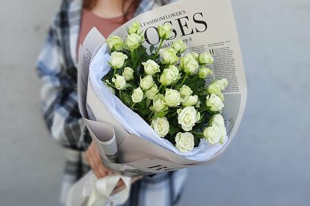 Букет из кустовых роз в дизайнерской упаковке.