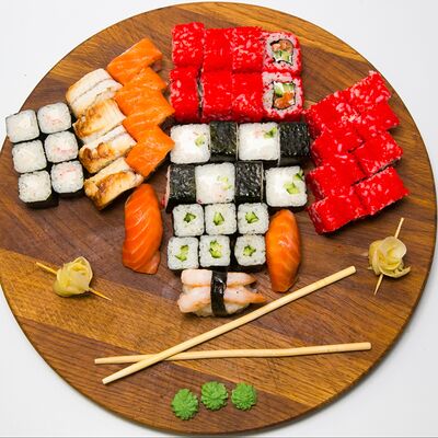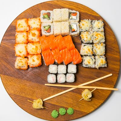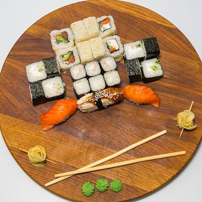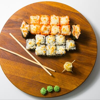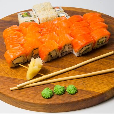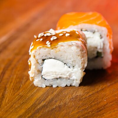 Лосось, угорь, сыр, огурец, рис (8 шт.)