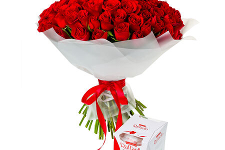 101 Роза 50 см красная с конфетами доставка