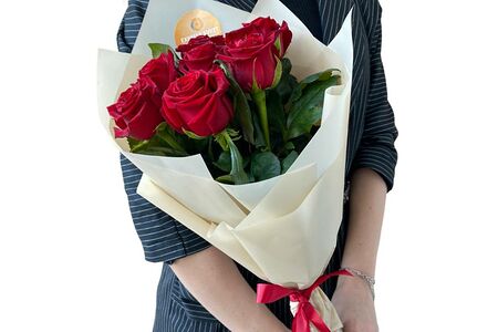 Роза Кон Аморе (50см) РОССИЯ - 7 шт., Современная упаковка - 1 шт., Лента атласная - 1 шт.