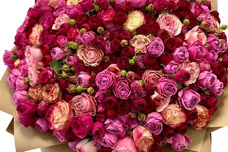 Роза кустовая пионовидная - 151 шт., Лента атласная - 1 шт., Современная упаковка - 1 шт.