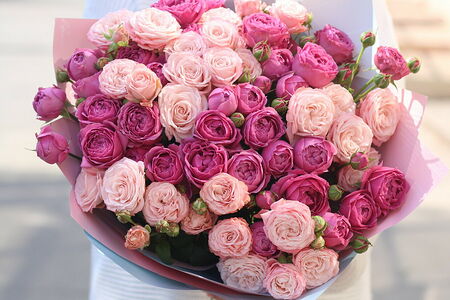 Большой букет пионовидных роз Указаны примерные размеры, чтобы вы могли представить внешний вид и масштаб, но фактически размеры могут немного отличаться.