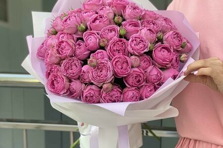 Состав: Роза пионовидная кустовая - 20; Упаковка - 1. Ширина: 68см. Высота: 50см.