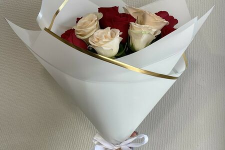 Состав: Роза красная - 6; Роза - 5. Ширина: 31см. Высота: 44см.