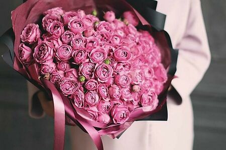 Огромный букет из пионовидных роз Указаны примерные размеры, чтобы вы могли представить внешний вид и масштаб, но фактически размеры могут немного отличаться.