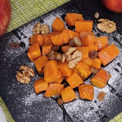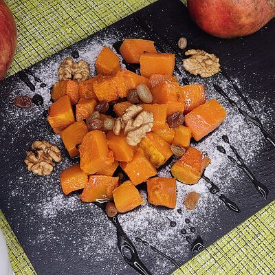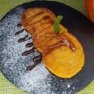 Тыква, мука, яйцо, сахар, сахарная пудра, топпинг Солена карамель