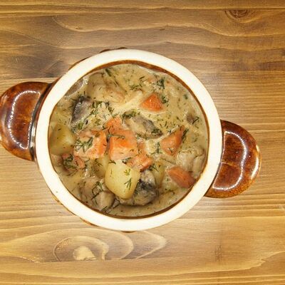 Курочка в горшочке с картошкой и грибами доставка