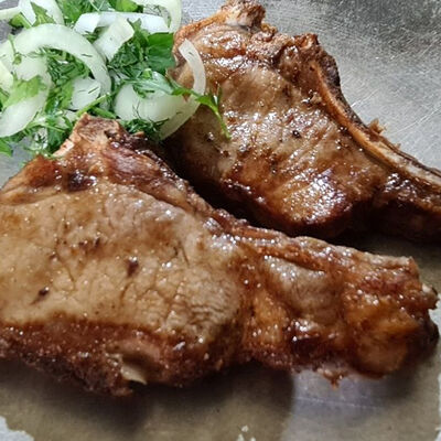 Свинина корейка, сол, перец, зелень, лук
