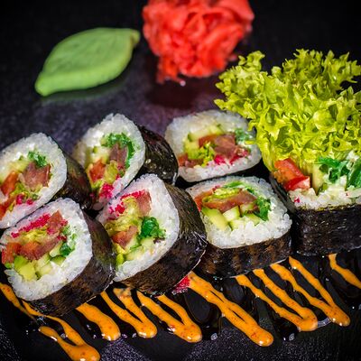 Лосось, сливочный сыр, цыпленок, соус спайси