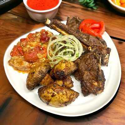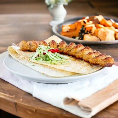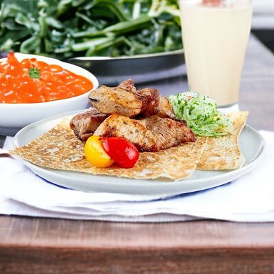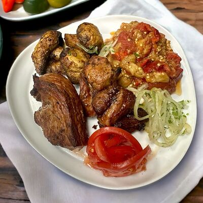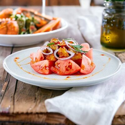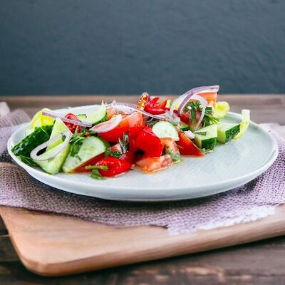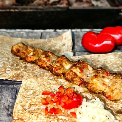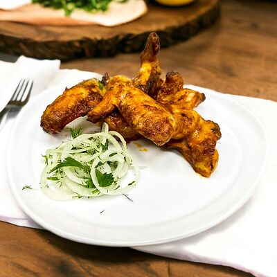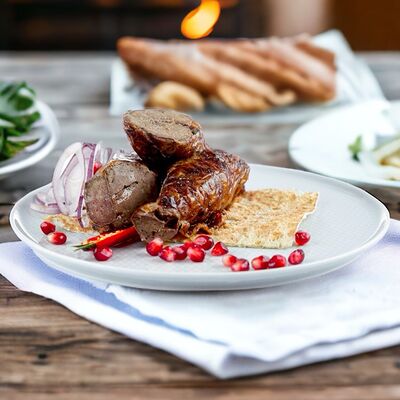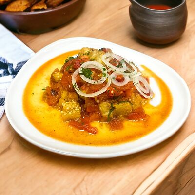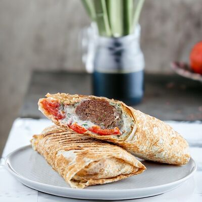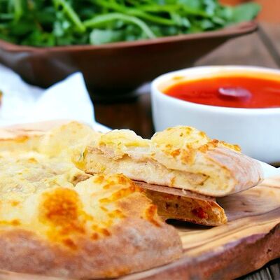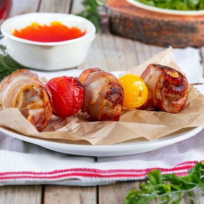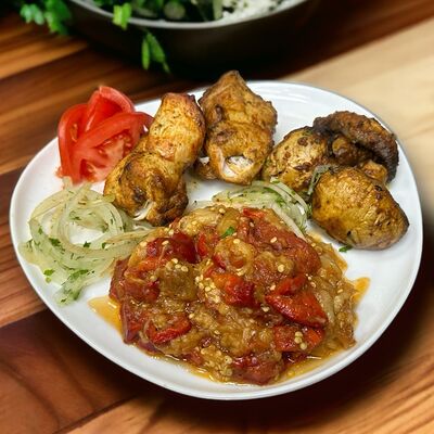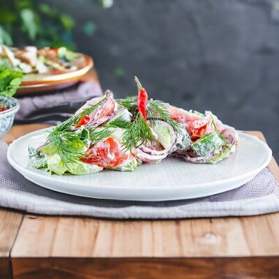 Фарш куриный, соус белый, соус красный, лук репчатый, петрушка, укроп, помидоры