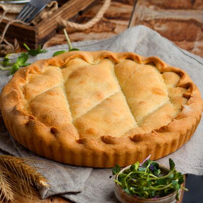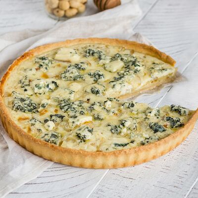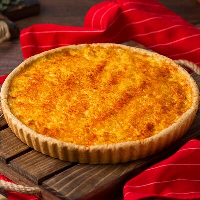 Кижуч, капуста брокколи, сыр российский, помидоры черри, сливки животные, куриное яйцо, крахмал картофельный, мука пшеничная высшего сорта, масло сливочное (82,5%), яйцо куриное, сахар, соль, сода, уксус (24 см)