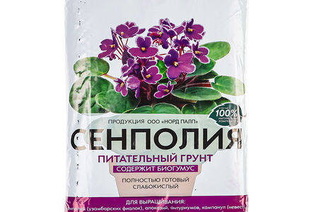 Почвогрунт – полностью готовый, по своим свойствам: слабокислый, близкий к нейтральному, рыхлый, с повышенным содержанием агроперлита, среднеобеспеченный элементами питания. Особенно эффективен для выращивания: сенполий узамбарских фиалок , алоказий, антуриумов, кампанул невест , аукуб, аспидистр, циперусов, диффенбахий, драцен, папоротников адиантумов, циботиумов, птерисов и др. и традесканций.