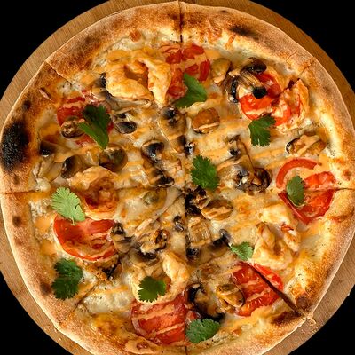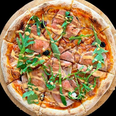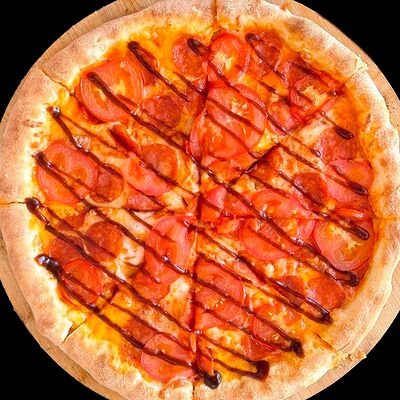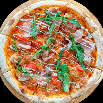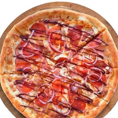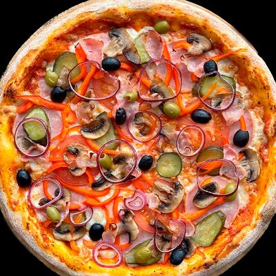 Перец болгарский, карбонад, томаты, огурцы маринованные, сыр моцарелла (30 см)