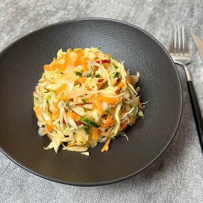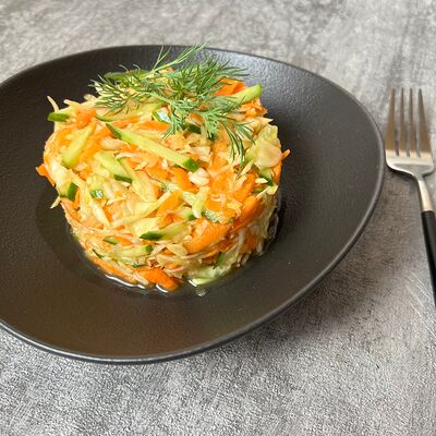 Капуста свежая, соль, сахар, морковь, уксус, масло растительное, зелень