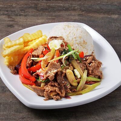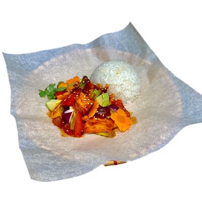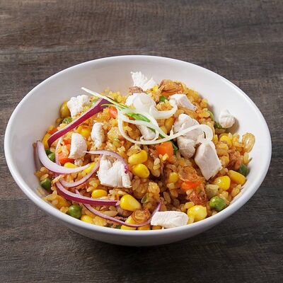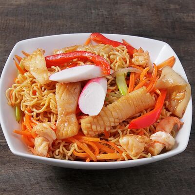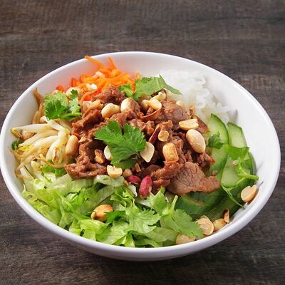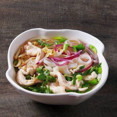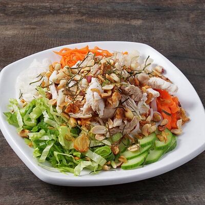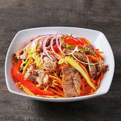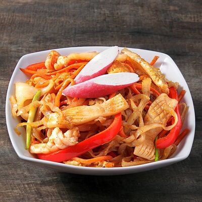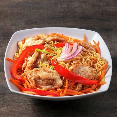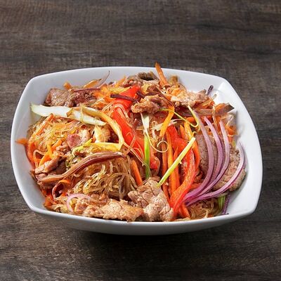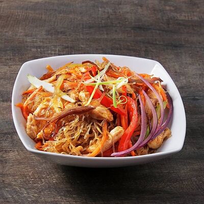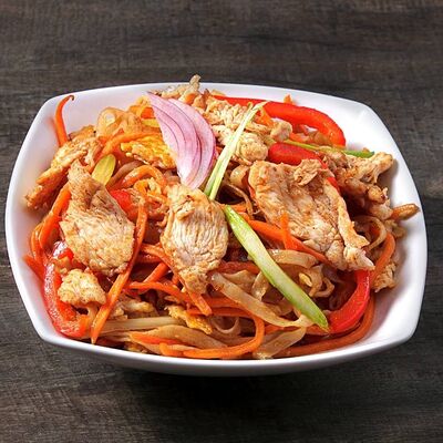 Вьетнамская лапша с курицей (куриное филе), морковь, болгарский перец, лук, стебель сельдерея, зелень