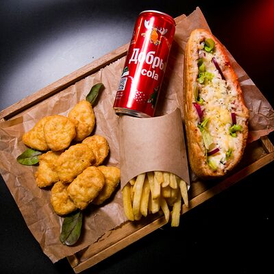 Куриная грудка, лук, огурцы, помидоры, листья салата, соус красный, сыр моцарелла, хлеб раздан