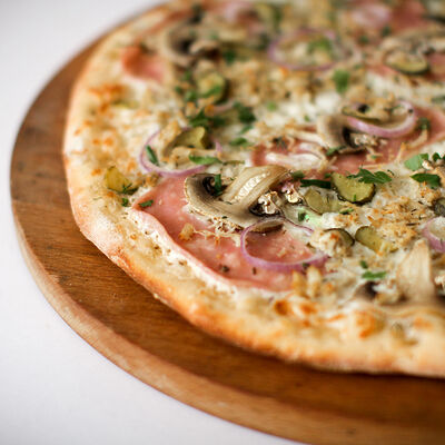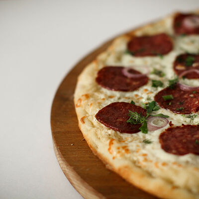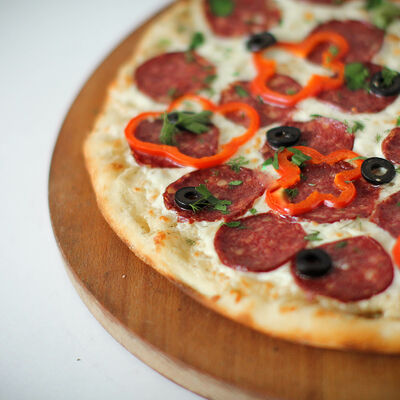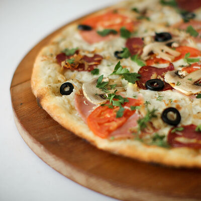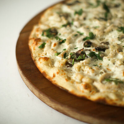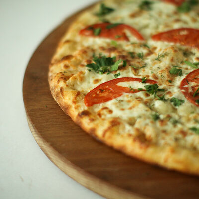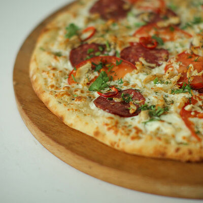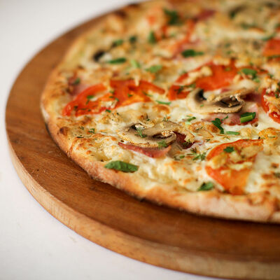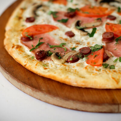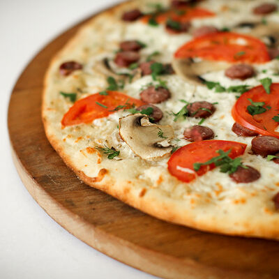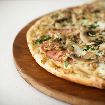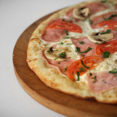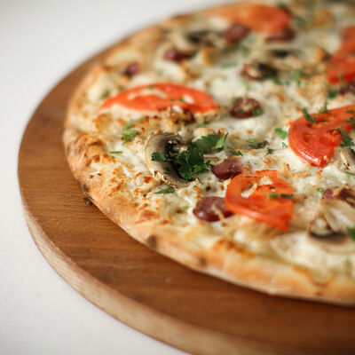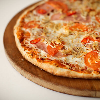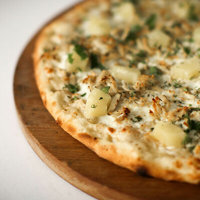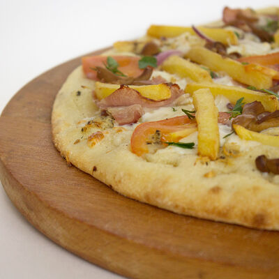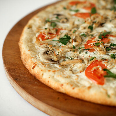 Пицца-соус, сыр моцарелла, куриное филе, ананасы