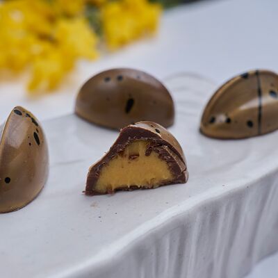 Корпус из молочного шоколада с кофейно-тыквенным ганашем на белом шоколаде