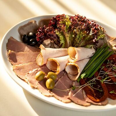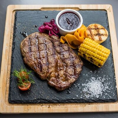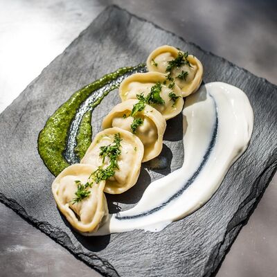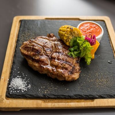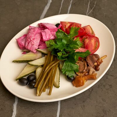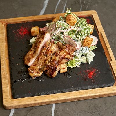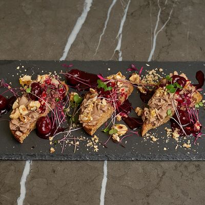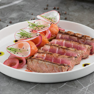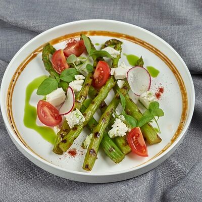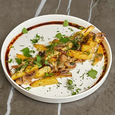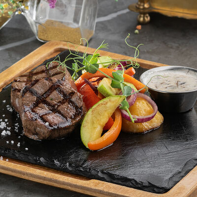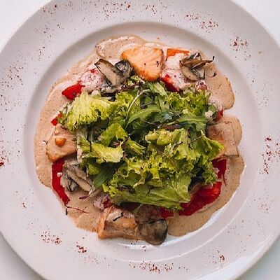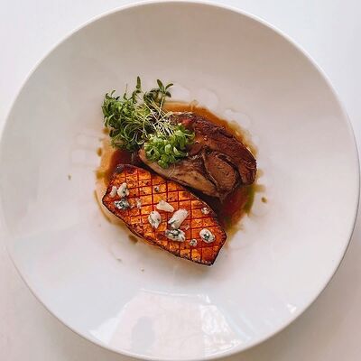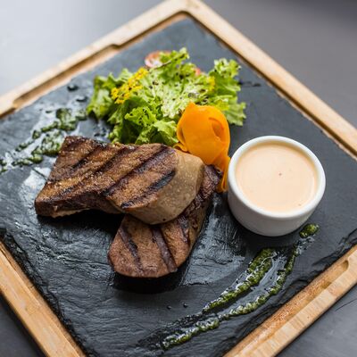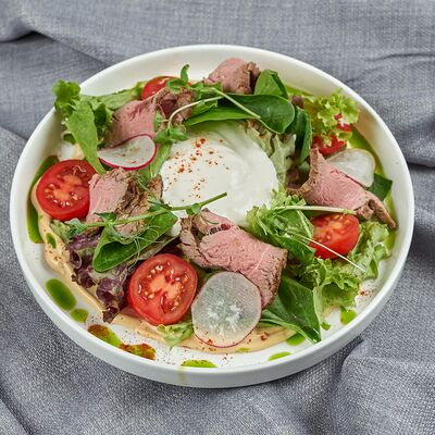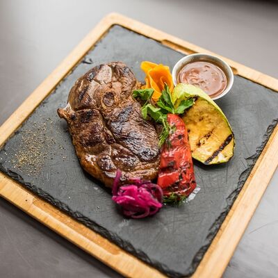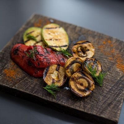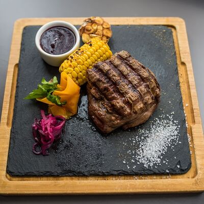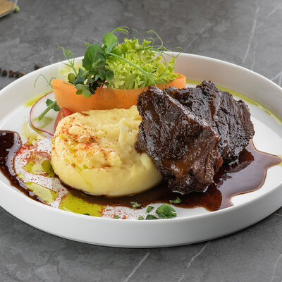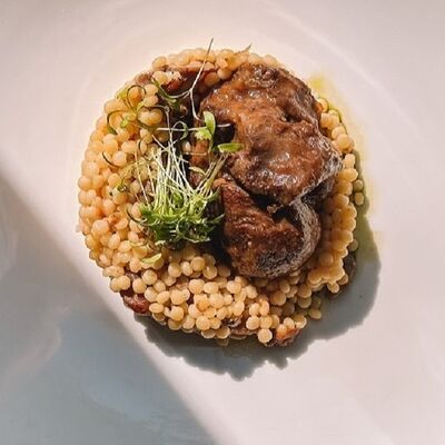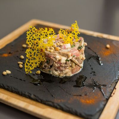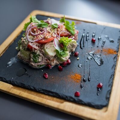 С говяжьими щёчками, печёным баклажаном, черри и сыром