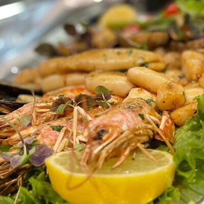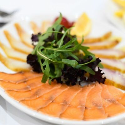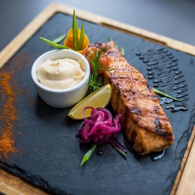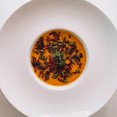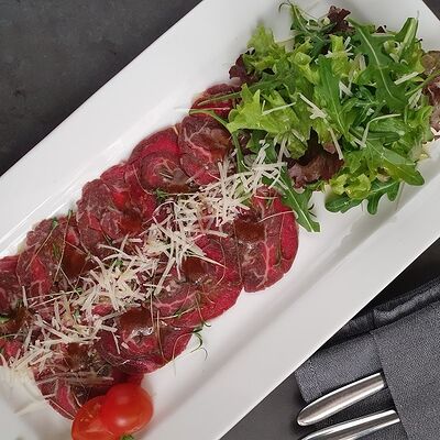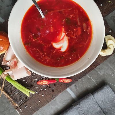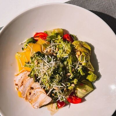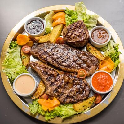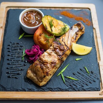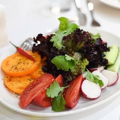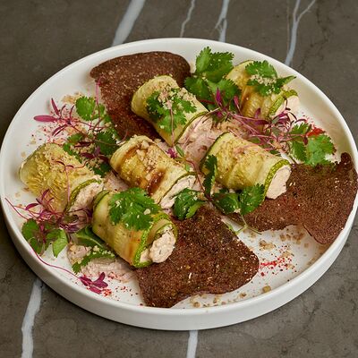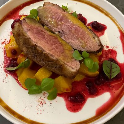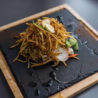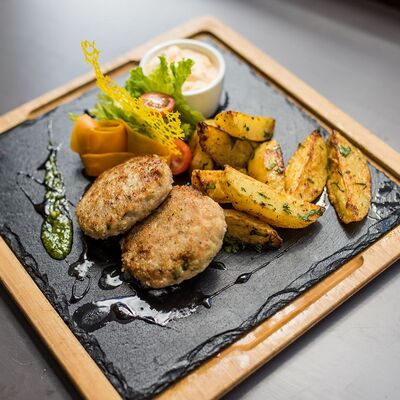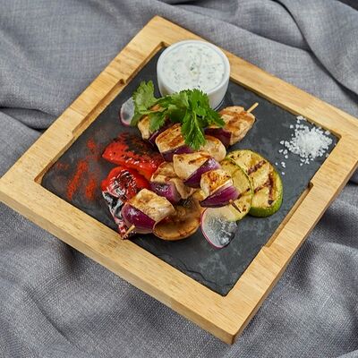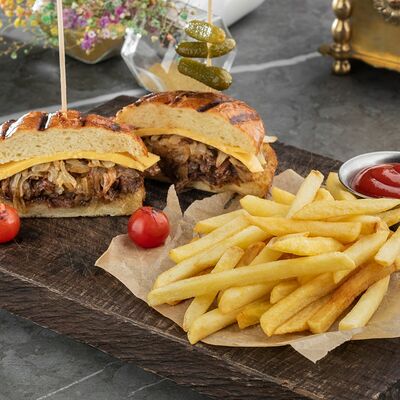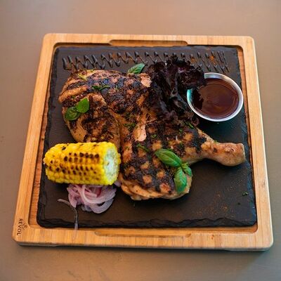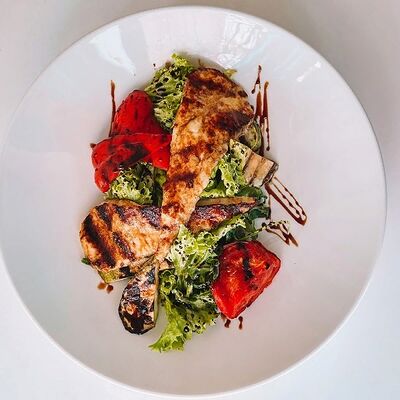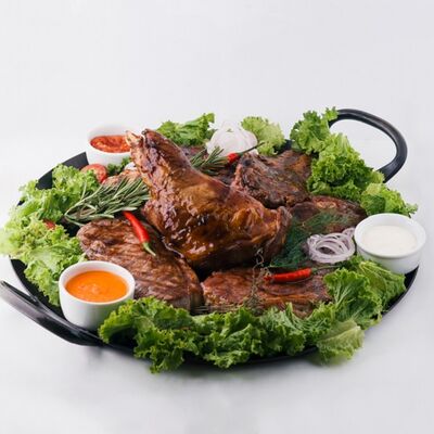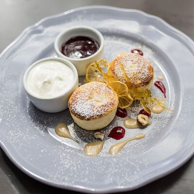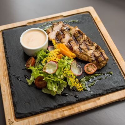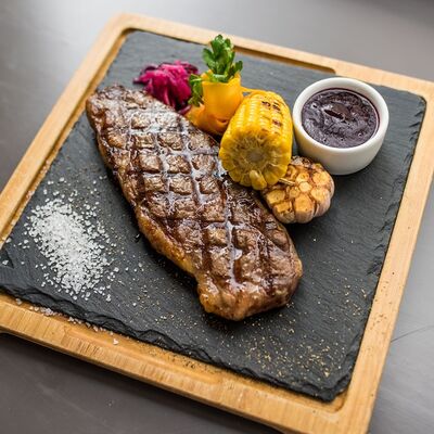 С говяжьими щёчками, печёным баклажаном, черри и сыром