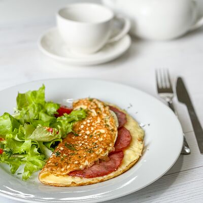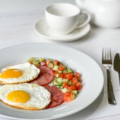 Яйца, молоко, чоль, ветчина, сыр, свежие овощи