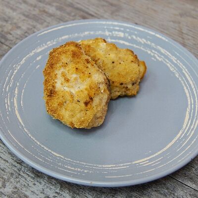 Cвинoй фарш, лук-репка, соль, перец черный молотый, яйцо, батон, вымоченный в молоке, панируется в панировочных сухарях