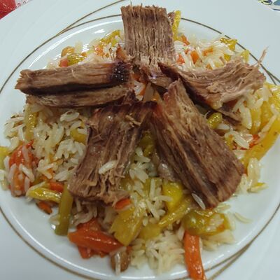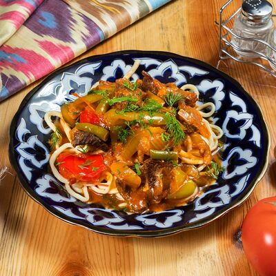 Говядина, болгарский перец, сельдерей, пекинская капуста, лук, фасоль стручковая, тесто