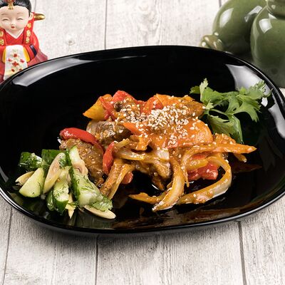 Маринованная говядина, жаренная с овощами в фирменном соусе