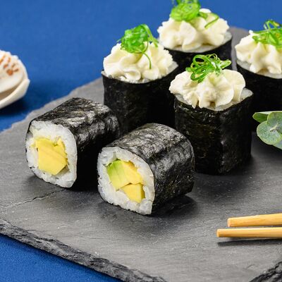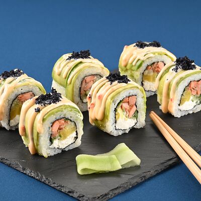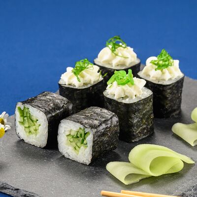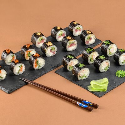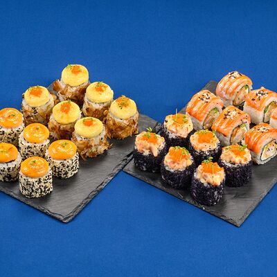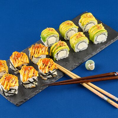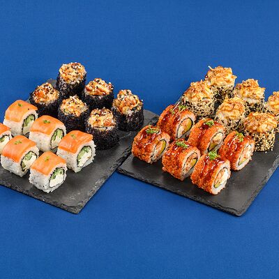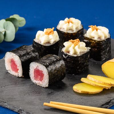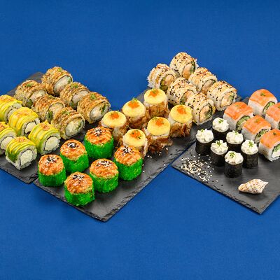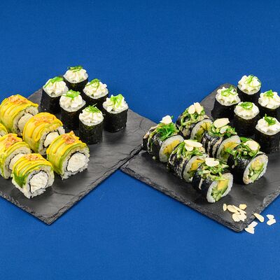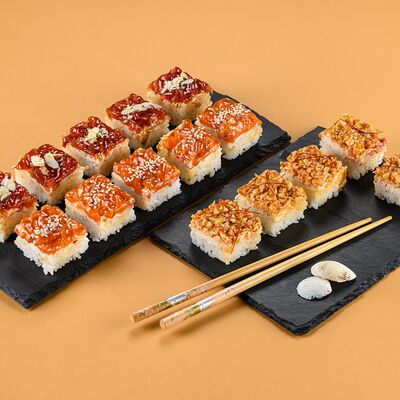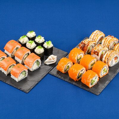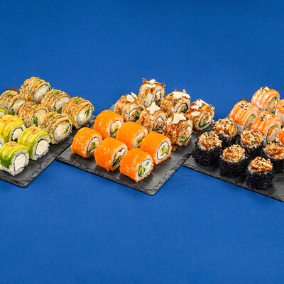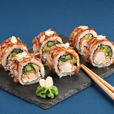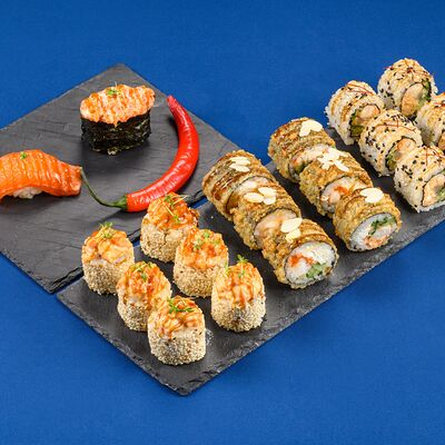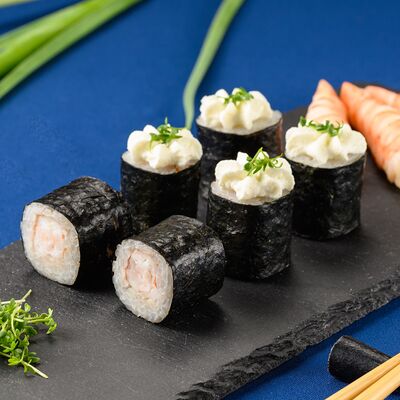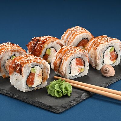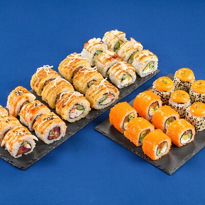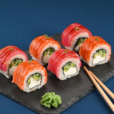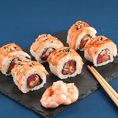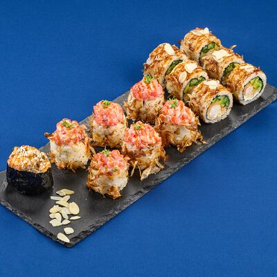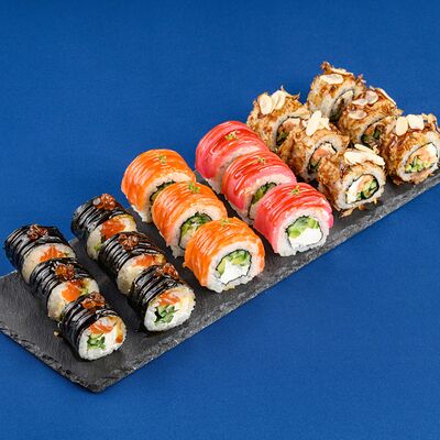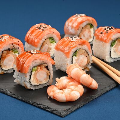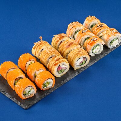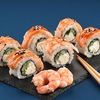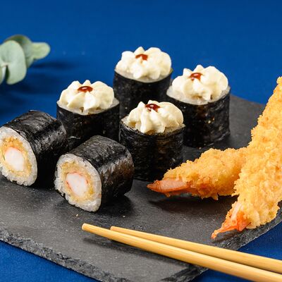 Филадельфия с креветкой, Калифорния с крабом, Темпура магуро (18 шт.)