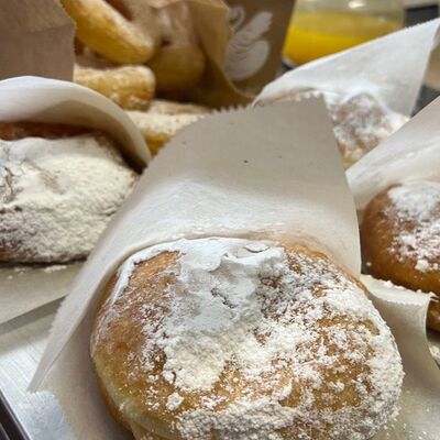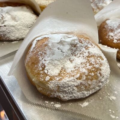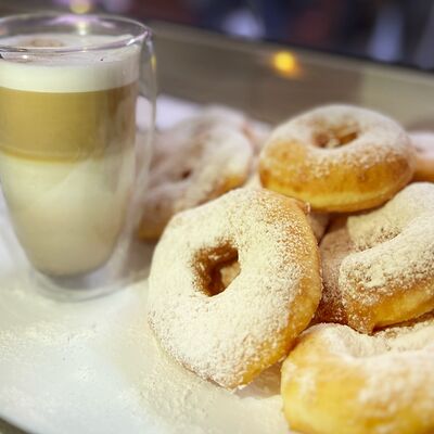 Пончик с начинками из 1- вишневого джема, 2 -вареной сгущенки, 3-воздушного заварного крема доставка