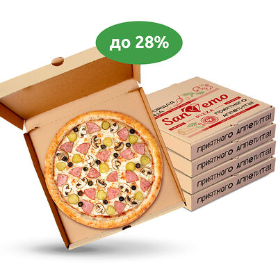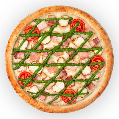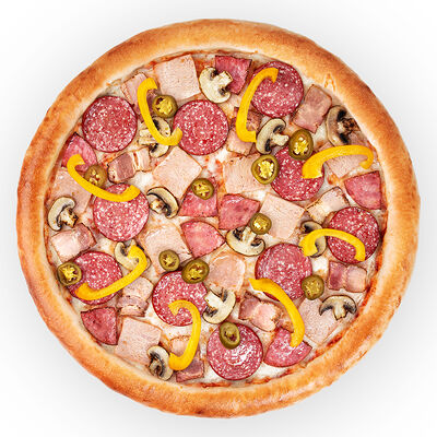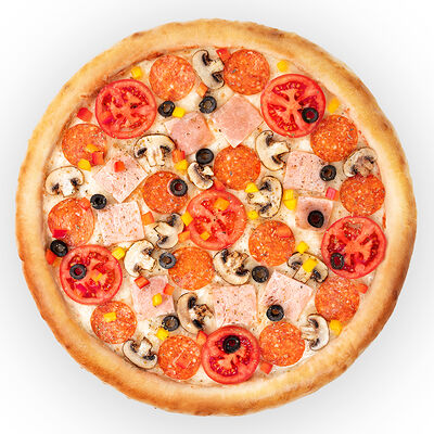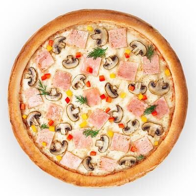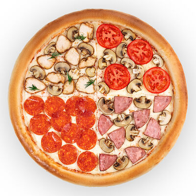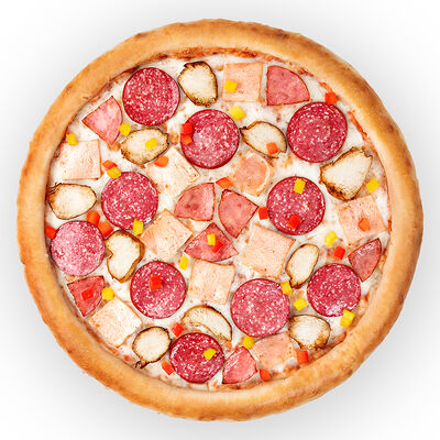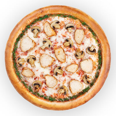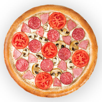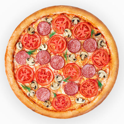 Соус томатный, шампиньоны, помидоры соус Маджорио, сыр Моцарелла