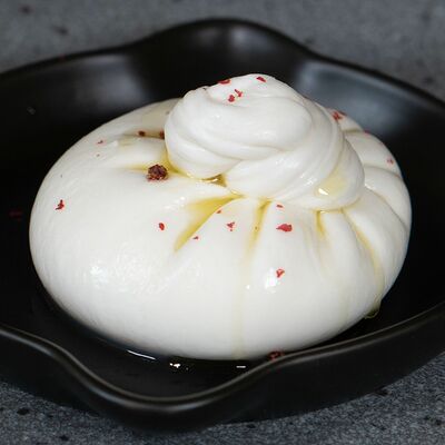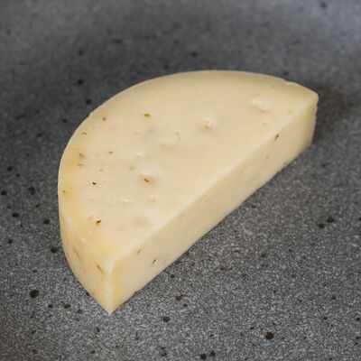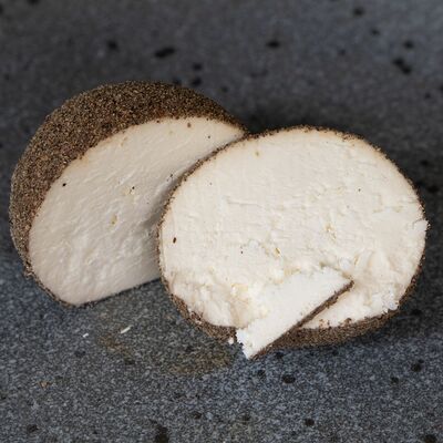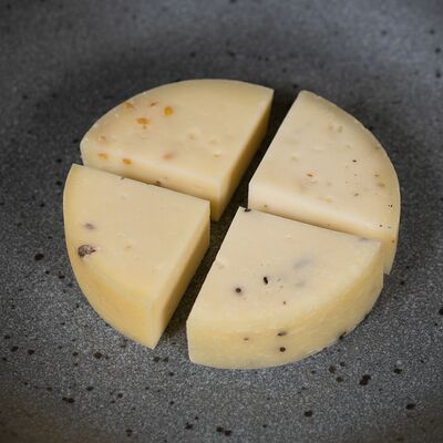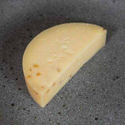 Твердый швейцарский сыр в форме шарика с чесноком в обсыпке из паприки