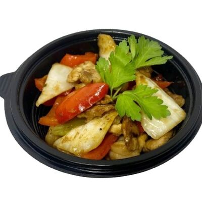 Свинина, пекинская капуста, сельдерей, болгарский перец, соевый соус