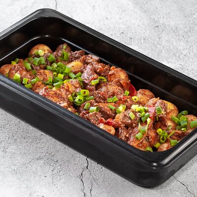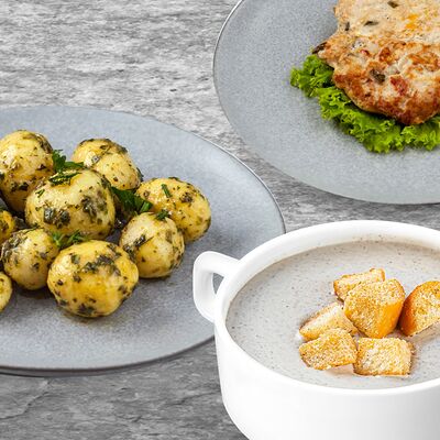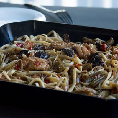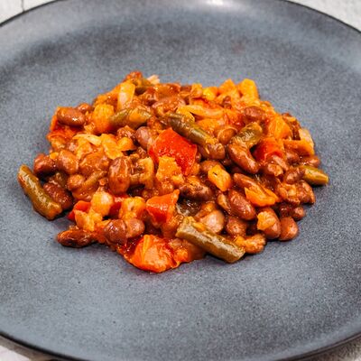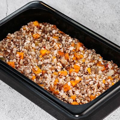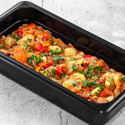 Баклажаны, вода питьевая, томаты, крупа киноа, масло подсолнечное, соус соевый, петрушка, лимон, соль