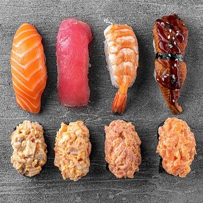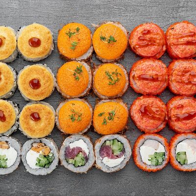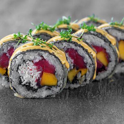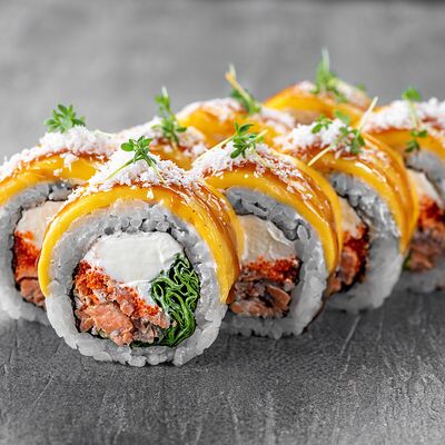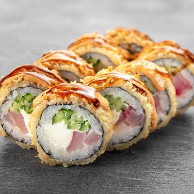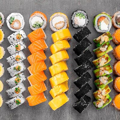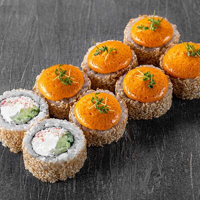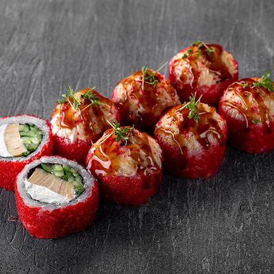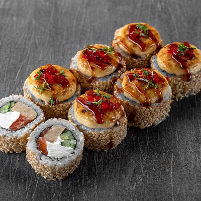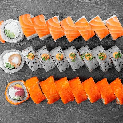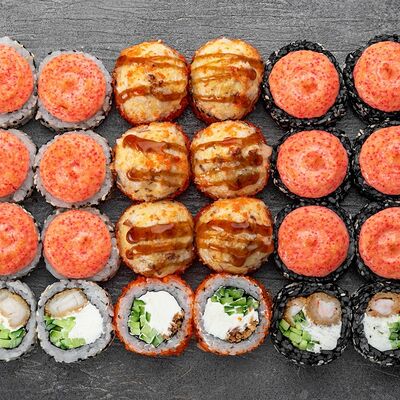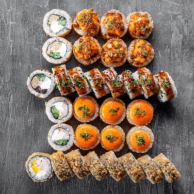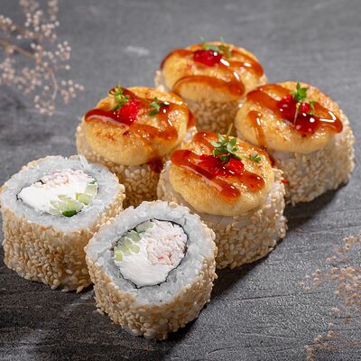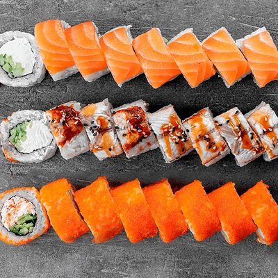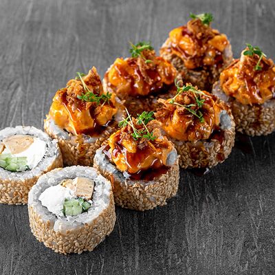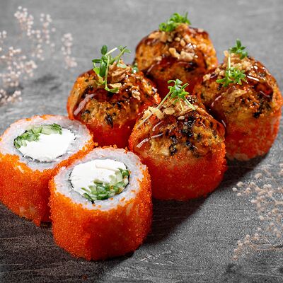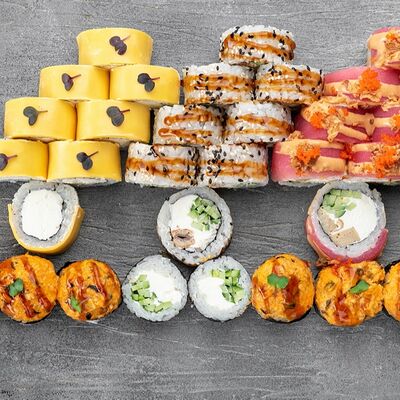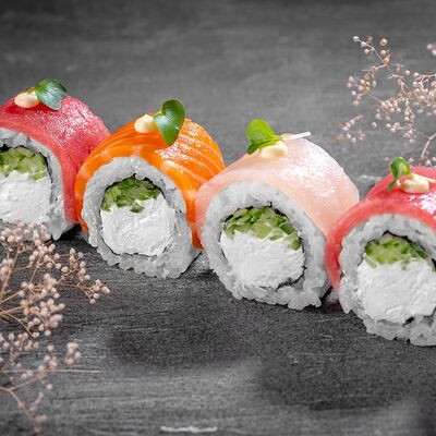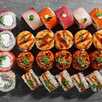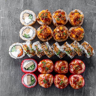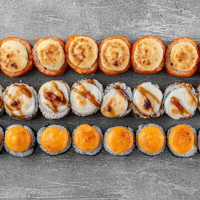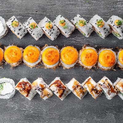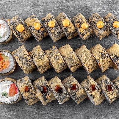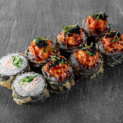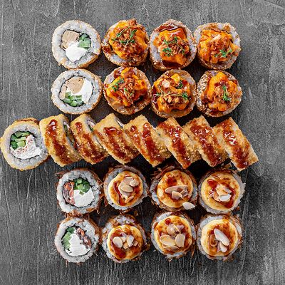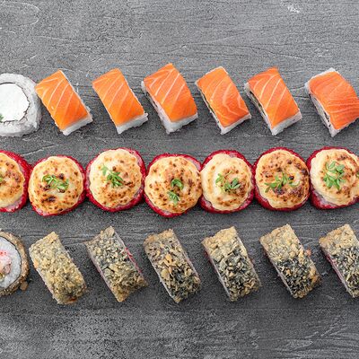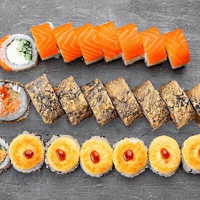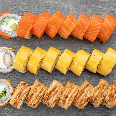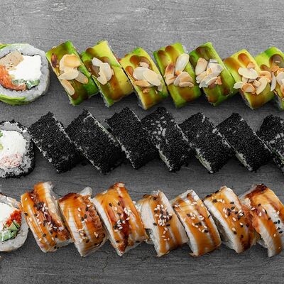 Ролл Цветущий миндаль, ролл Темпура снежный краб, ролл Взрывной окунь. Яркий набор для ярких впечатлений. Здесь есть всё, чтобы почувствовать многообразие вкусов