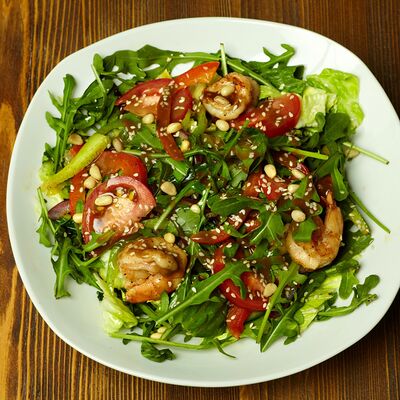 Креветки, соль, перец, лист лавровый, чеснок, лимон, соус соевый