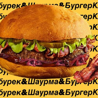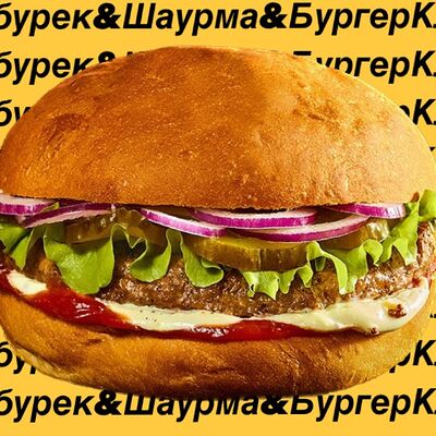 Котлета из мраморной говядины, салат айсберг, маринованные огурцы, свежий красный лук, кетчуп, соус сливочно-горчичный