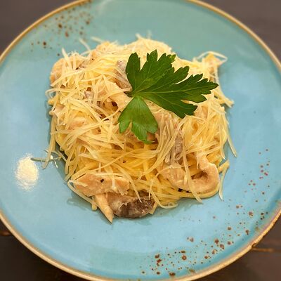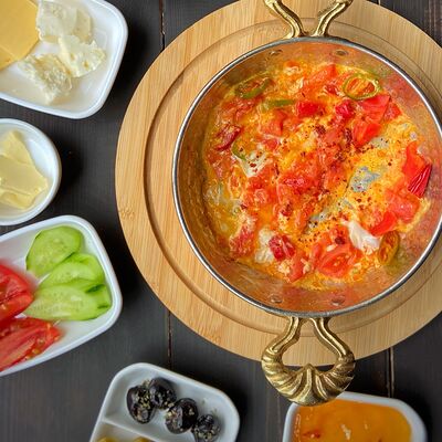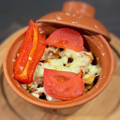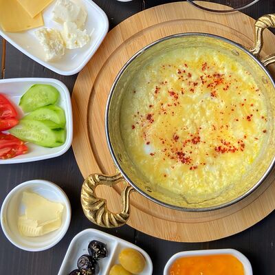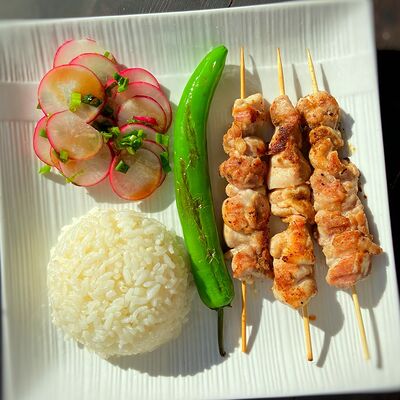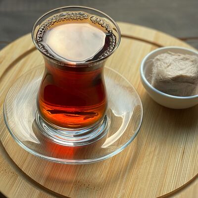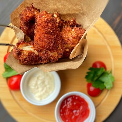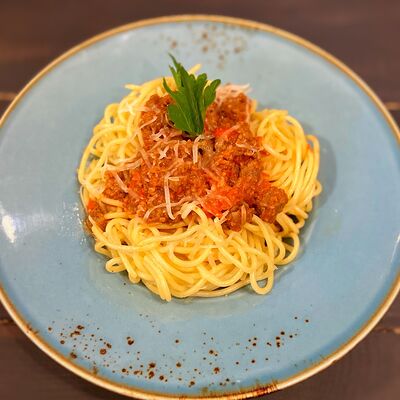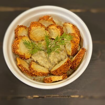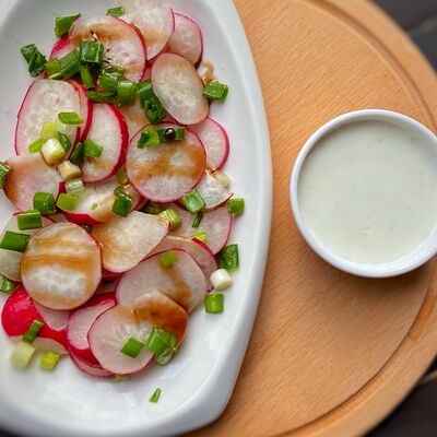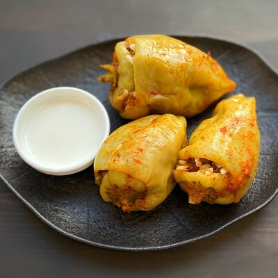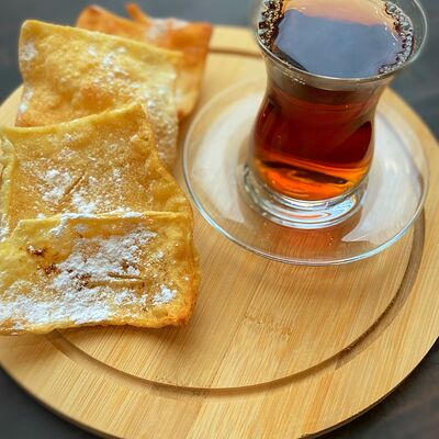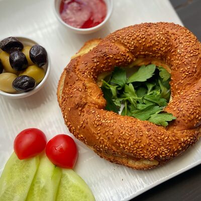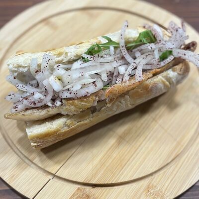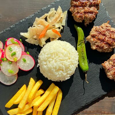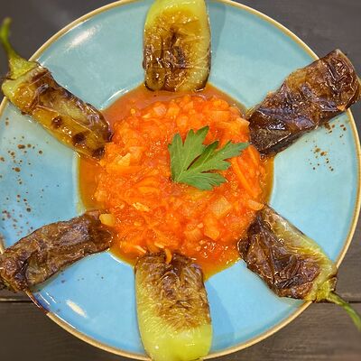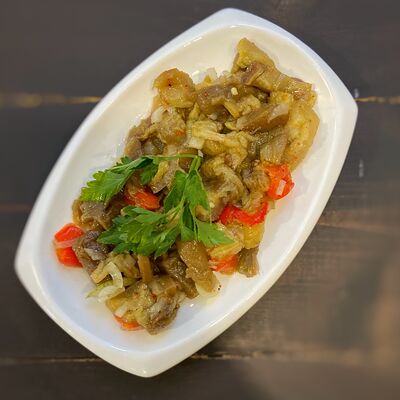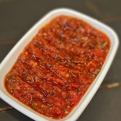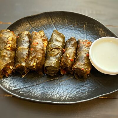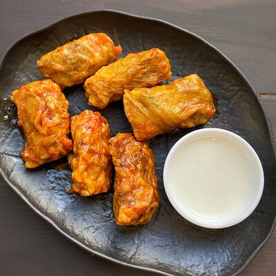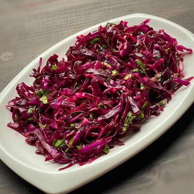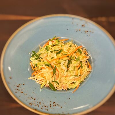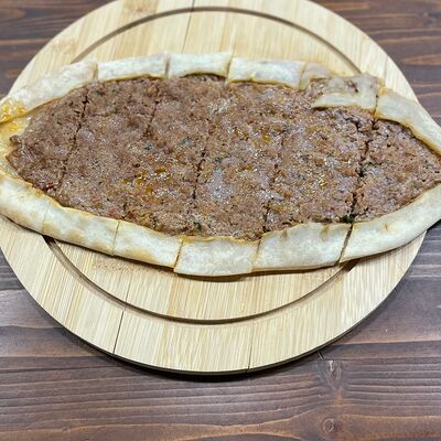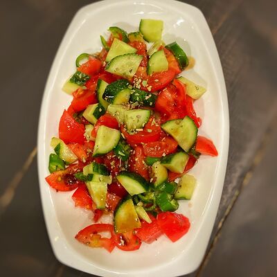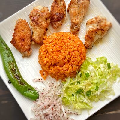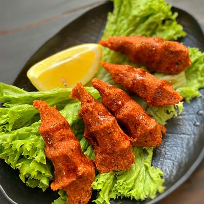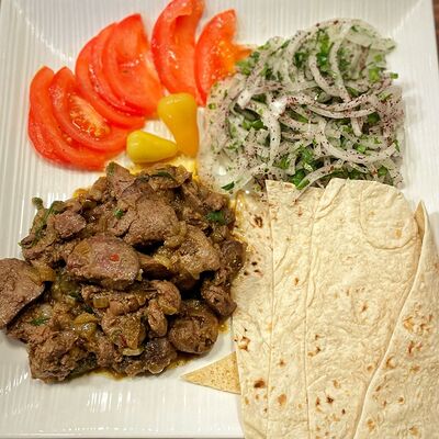 Турецкий булгур, томатная паста, гранатовый соус, лук, зелень, соль, специи, листья салата, лимон
