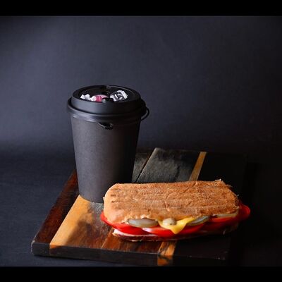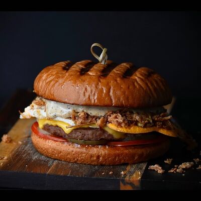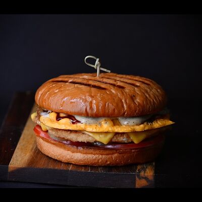 Хрустящая итальянская булочка Чиабатта, Бекон, Сыр Чеддер, Помидор, Соус фирменный
