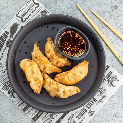 Жареные японские гедза с курицей (5 шт.). Подается с соусом