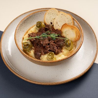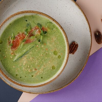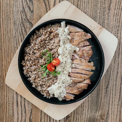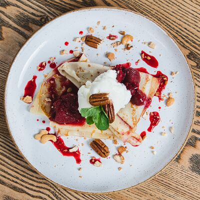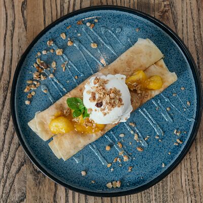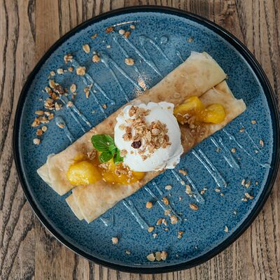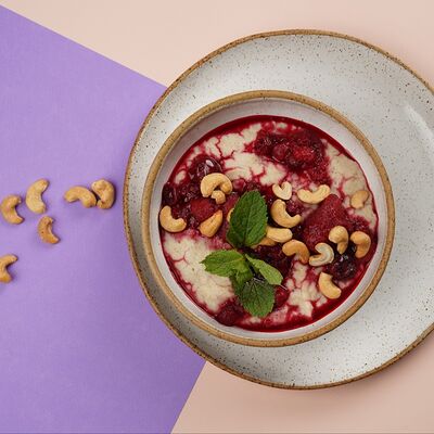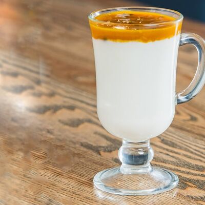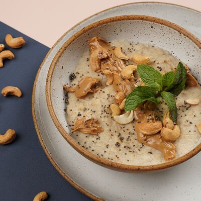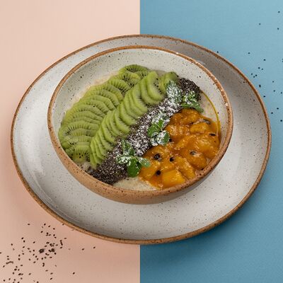 Каша на молоке, пюре манго, банан, пекан, чиа