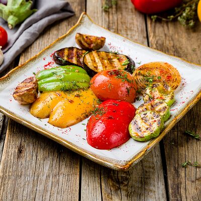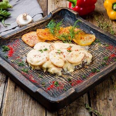 Куриное бедро в специях с горчицей, болгарским перцем, острым перцем и сыром гауда