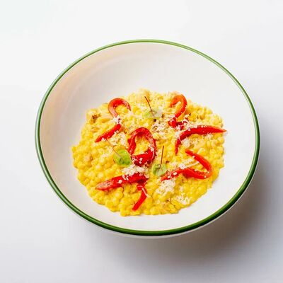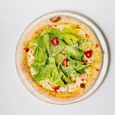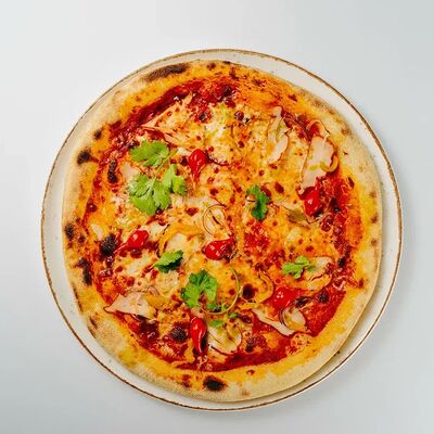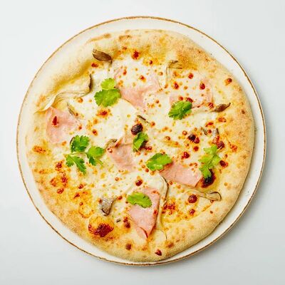 Тесто для пиццы, мука семола, вешенки, ветчина, моцарелла, трюфельное масло, кинза (33 см)
