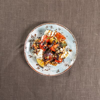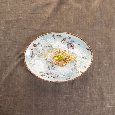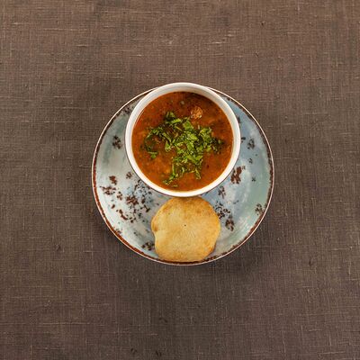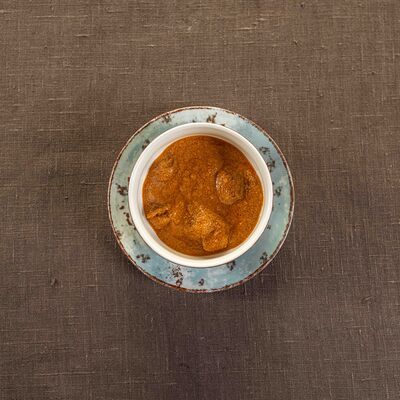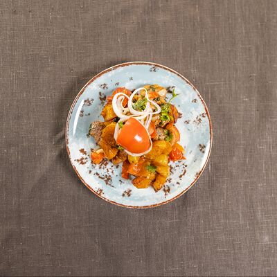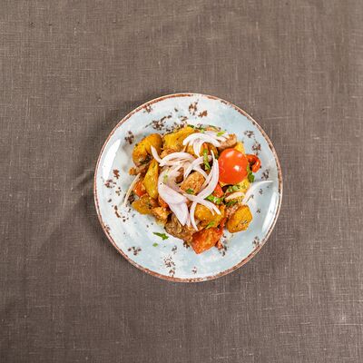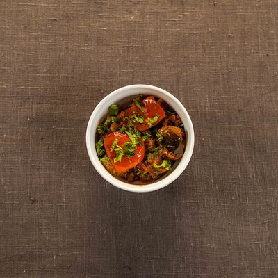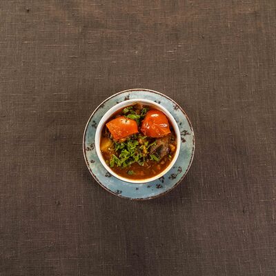 Тушеная говядина в соусе с грецкими орехами, приправами и свежей кинзой