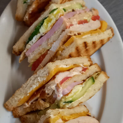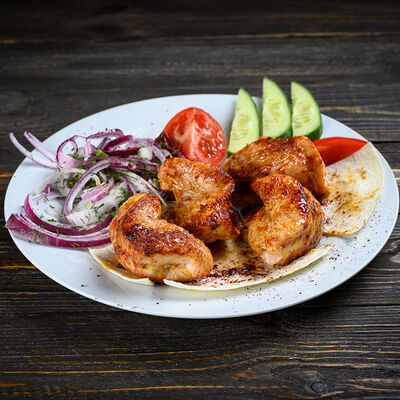 Капуста айсберг 2x, соус сырный 2x, лук маринованный 2x, помидор 2x, огурец свежий 2x, куриное мясо 2x, тортилья сырная 2x, сыр чеддер 2x, соус фирменный 2x