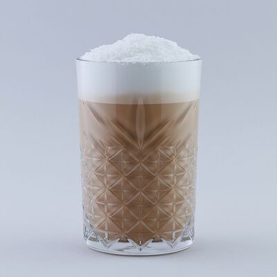 Зерновой кофе сухой обжарки (Arabica 80%, Robusta 20%), сливки 10%, вода, цитрусовый порошок (высушенная цедра лимона и апельсина, сахар)