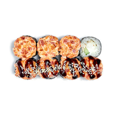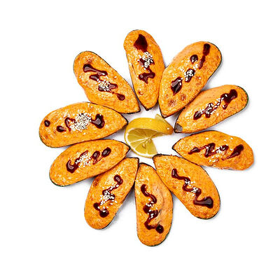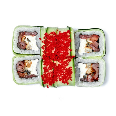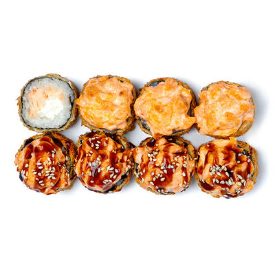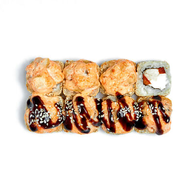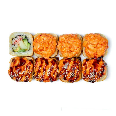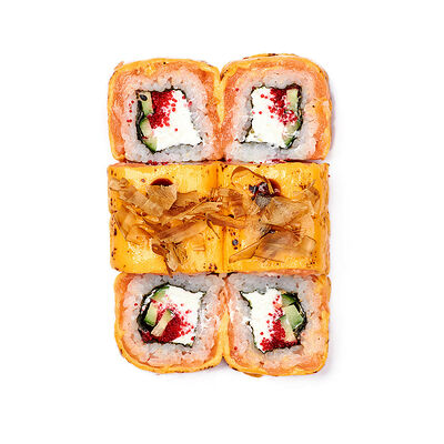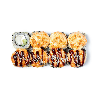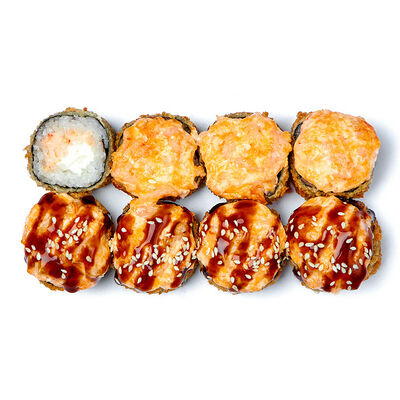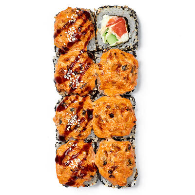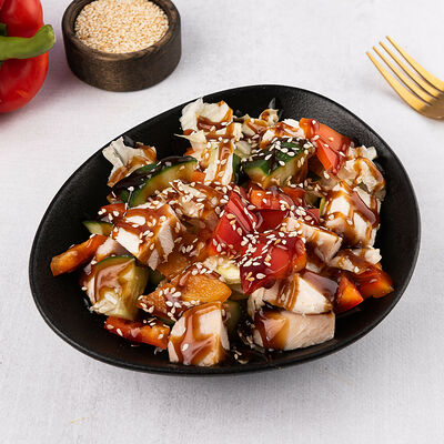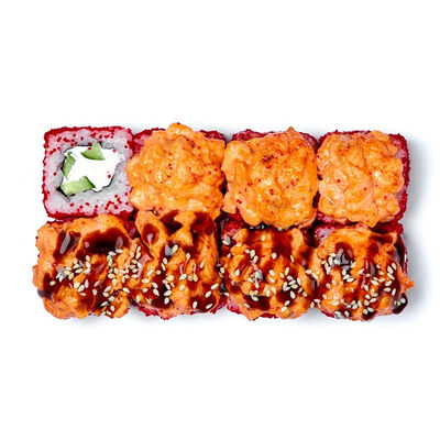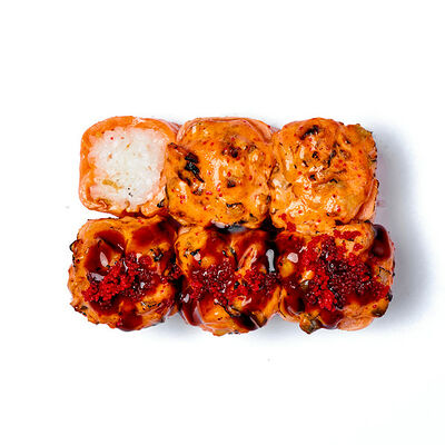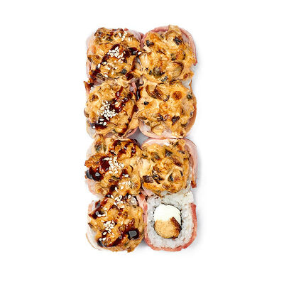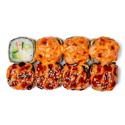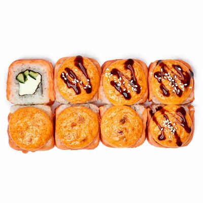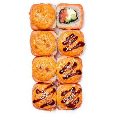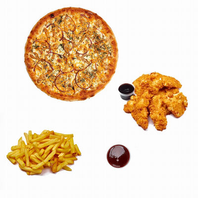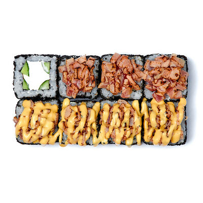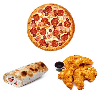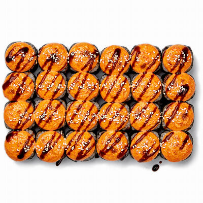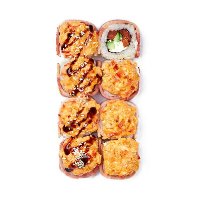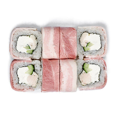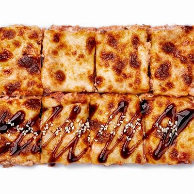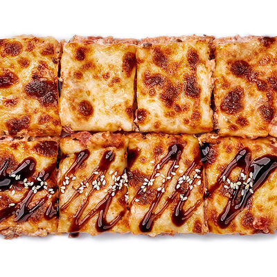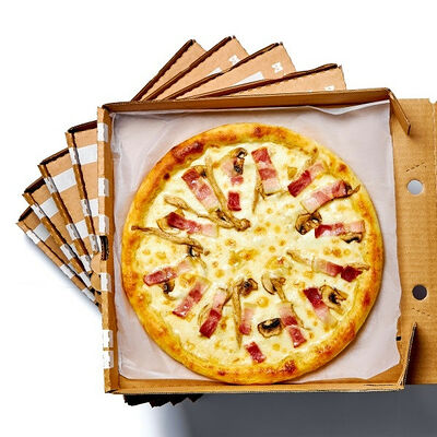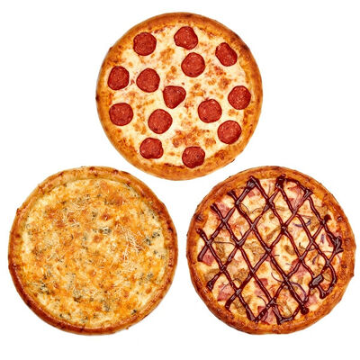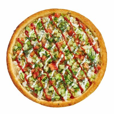 Тесто тонкое, томатный соус, шрирача-соус, сыр моцарелла, пепперони, бекон (28 см)