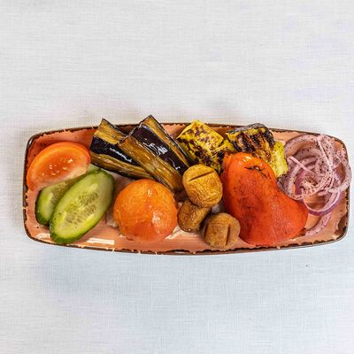 Перец болгарский, томаты, баклажаны и шампиньоны