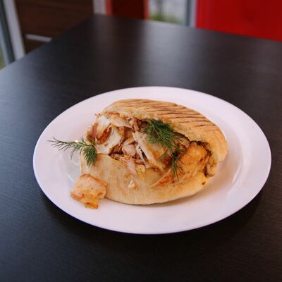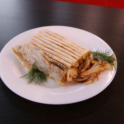 Куриное мясо, лаваш, овощной салат, соус