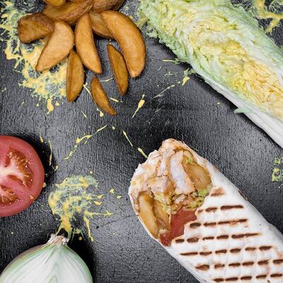 Обжаренные во фритюре ломтики картофеля со специями. Порция на выбор